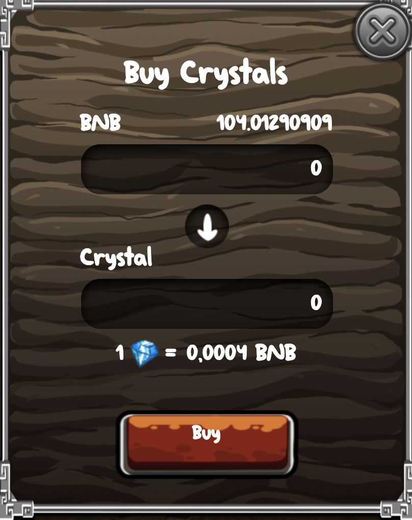 You can buy crystals for BNB, you need them to buy and upgrade the towers.